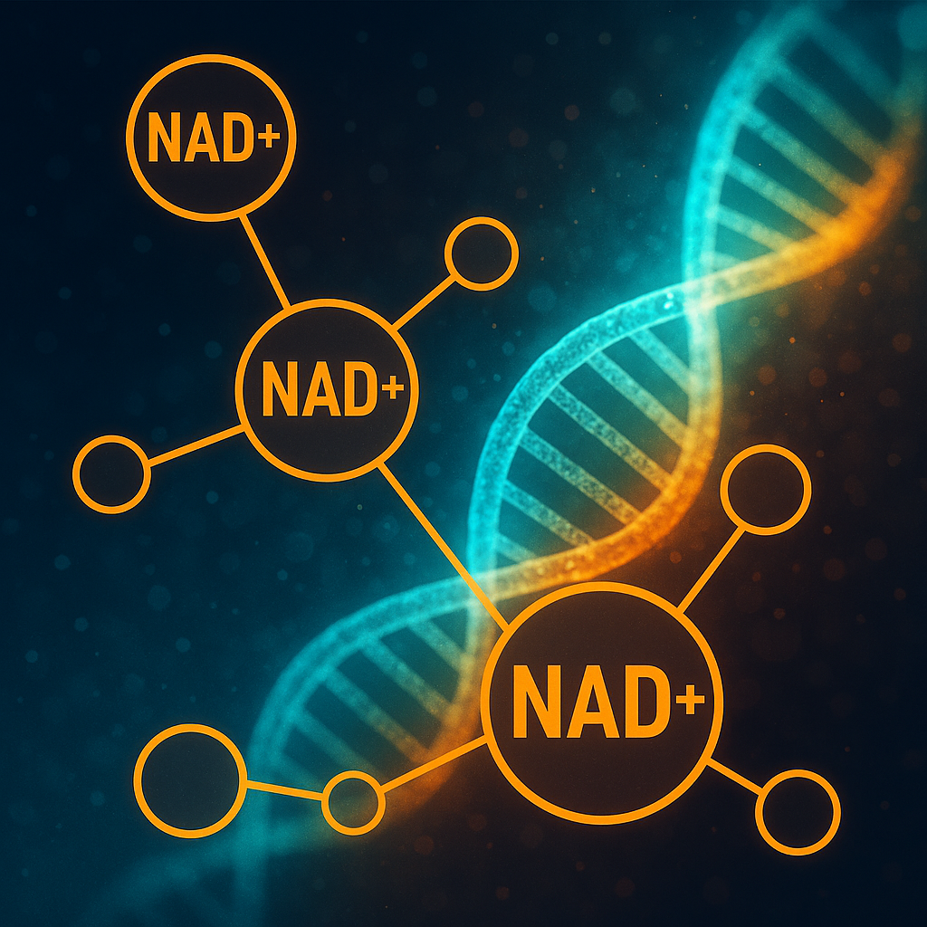NAD serves as a coenzyme in redox reactions, helping turn nutrients into cellular energy. It is also required for DNA maintenance and repair through enzymes such as sirtuins and PARPs. These functions link NAD to longevity research, neurological health, and mitochondrial performance.